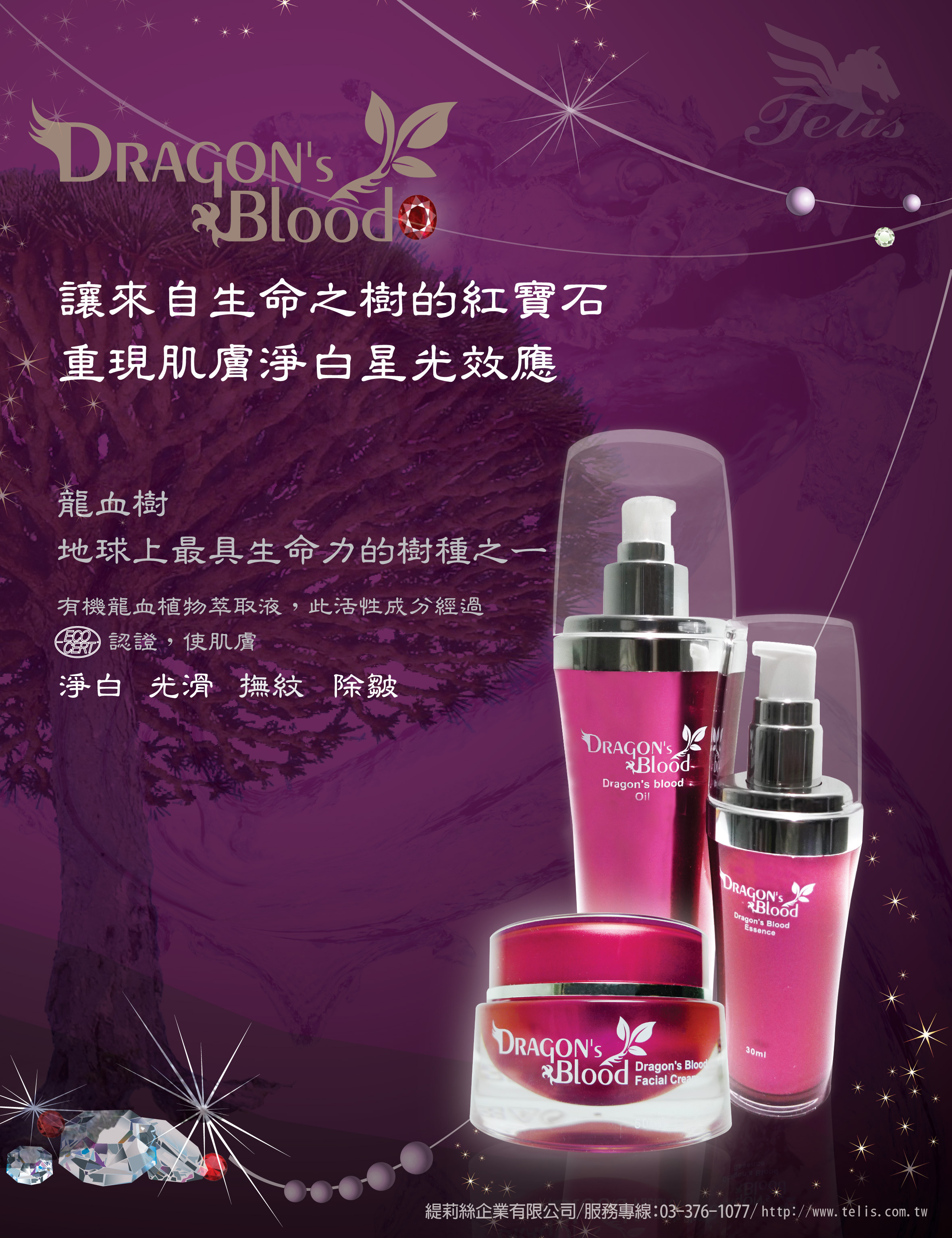 龍血系列保養品:來自亞馬遜河流域龍血樹萃取液[有機龍血]為主要成份,並有